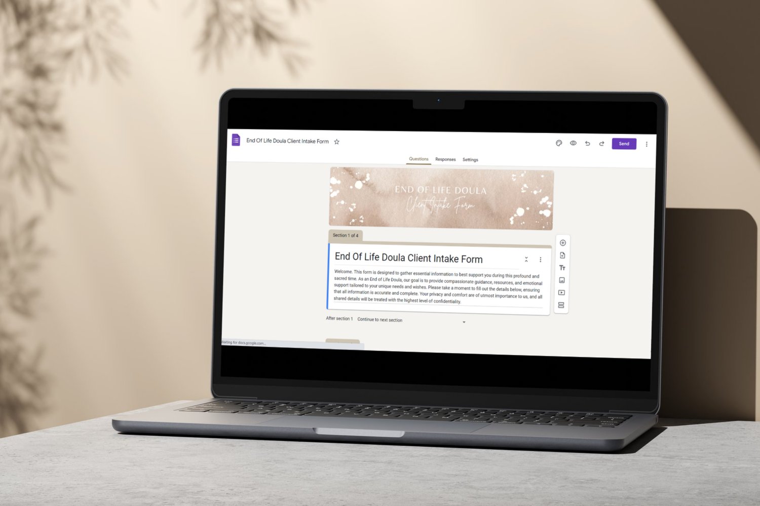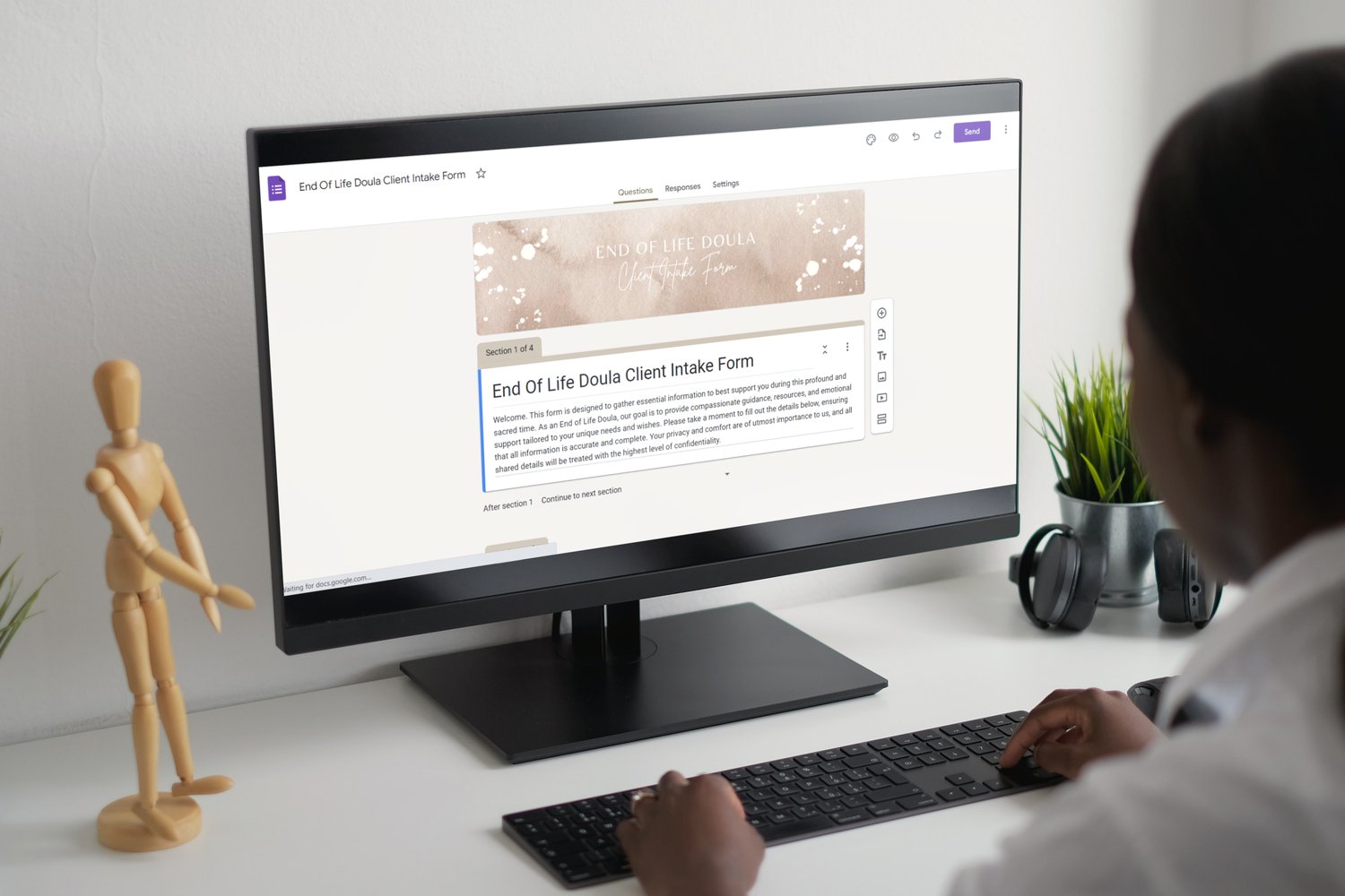 Editable End of Life Doula Client Intake Form Template, Death Doula Client Evaluation Questionnaire, Editable Google Forms Template #4033