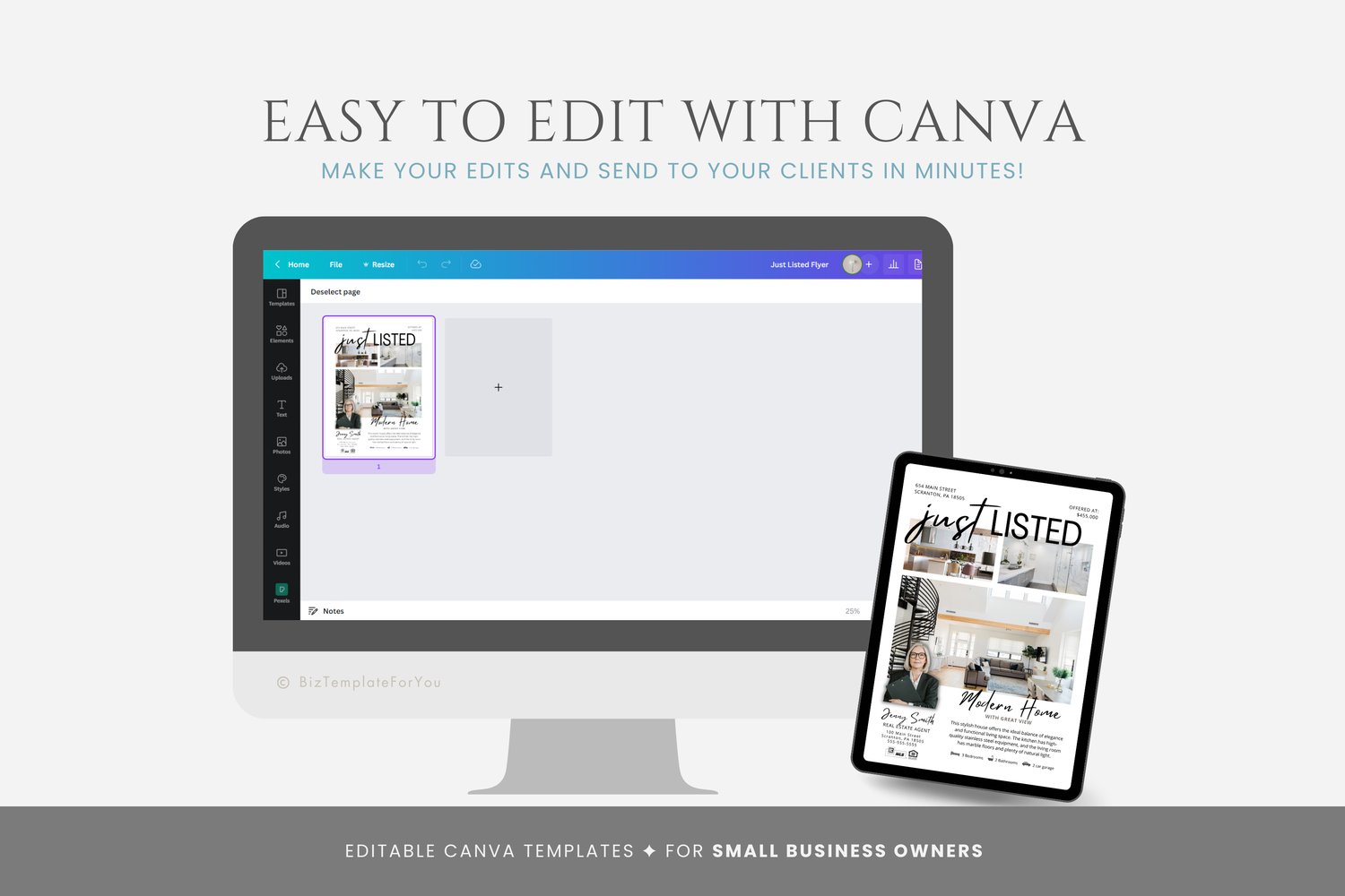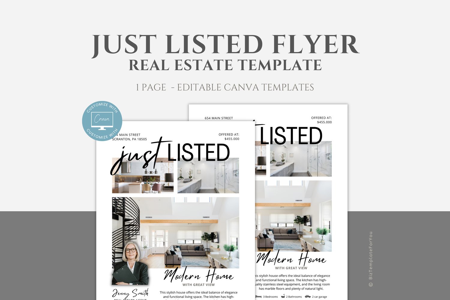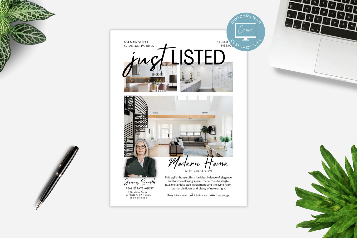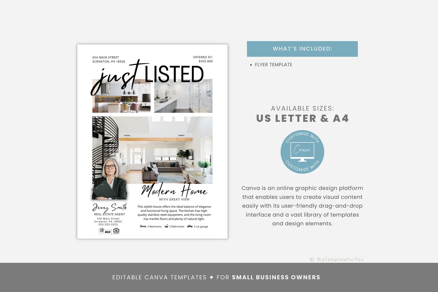 Editable Real Estate Flyer Template, Just Listed Flyer for Realtors, Real Estate Marketing Tools, fully editable in Canva, Marketing Mailer #1092