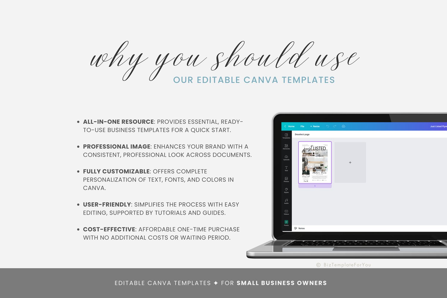 + All elements of our templates are FREE. BizTemplateForYou bears no responsibility for situations wherein the client utilizes PRO elements within Canva, resulting in charges incurred by Canva.